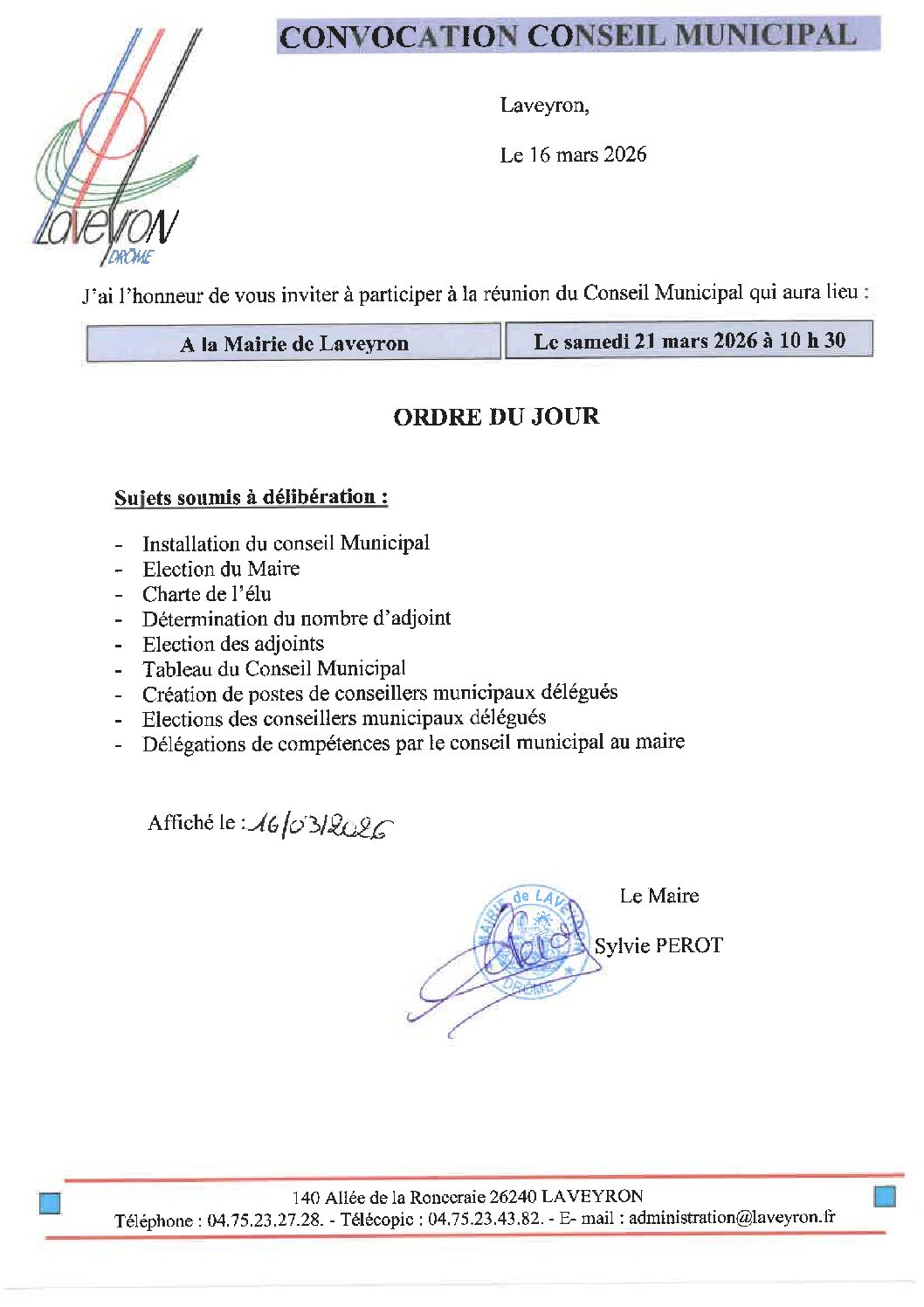 Accueil » Comptes-rendus du Conseil » ORDRE DU JOUR 21/03/2026
